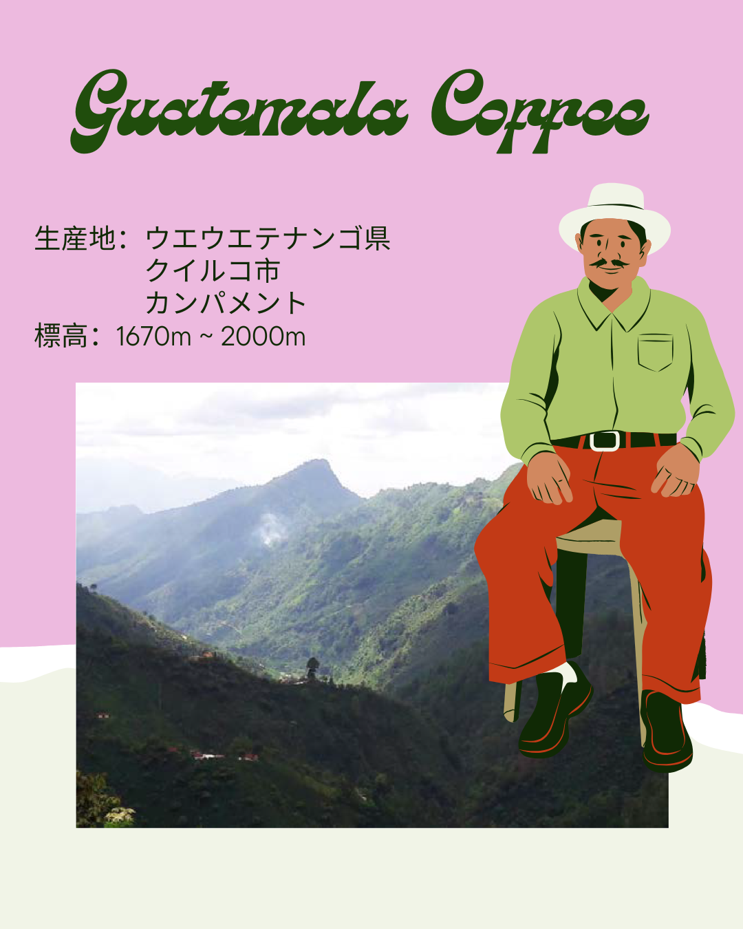 生産エリア:ウエウエテナンゴ クイルコ市                                        農園名:ファミリア・カスティージョ                                          品種 :ブルボン/カトゥーラ/カツアイ